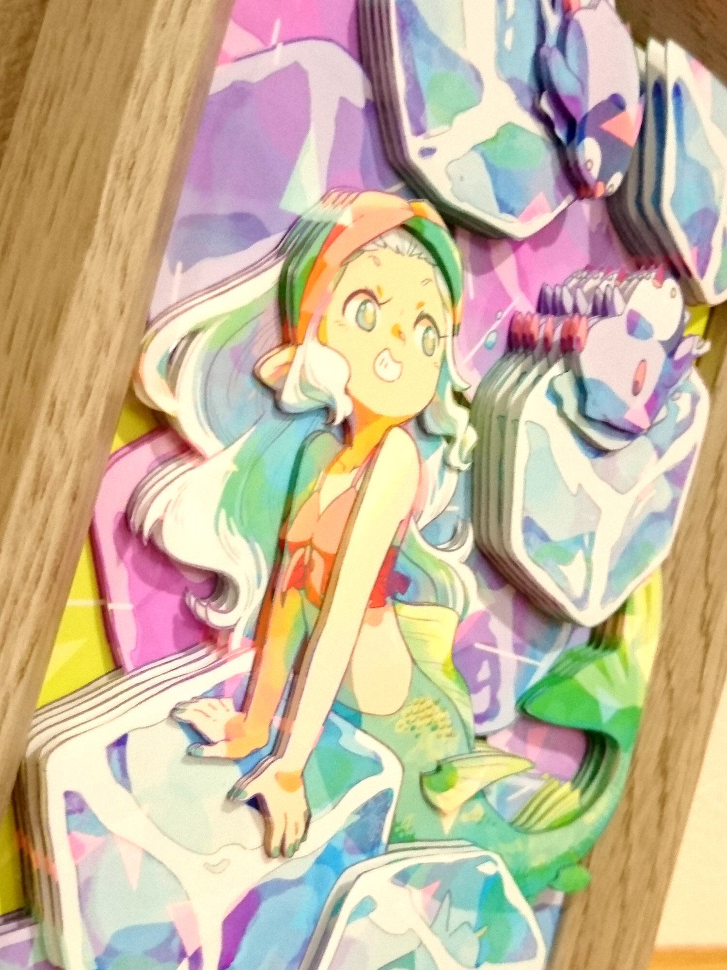 イラストを切り抜き、何枚も重ねて作るアート作品です。