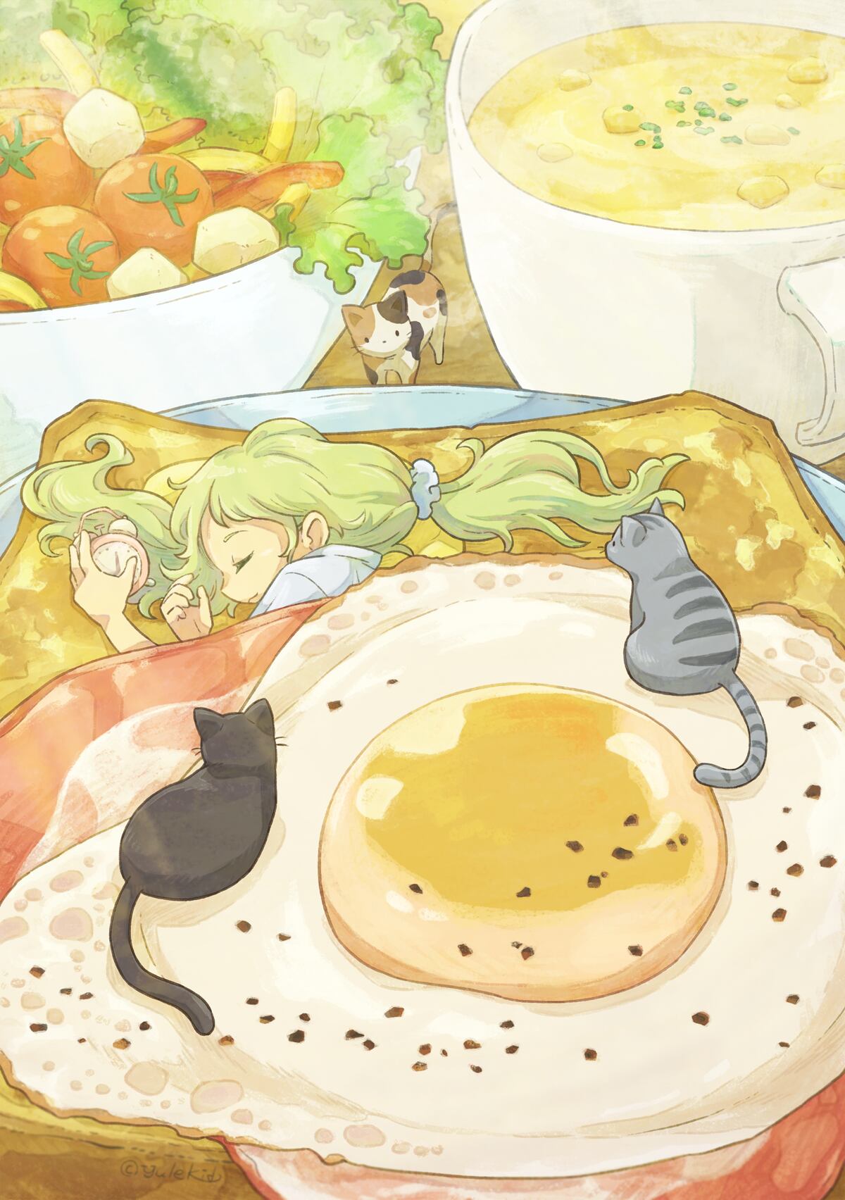 スープが冷める前に起きてくださいよ。