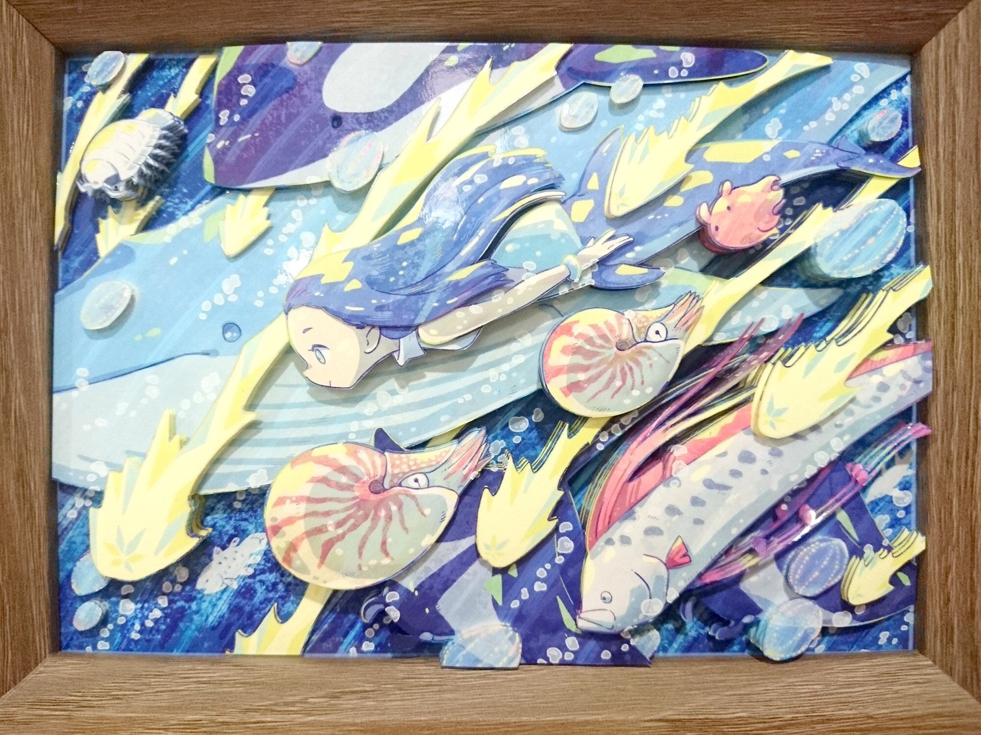 イラストを切り抜き、何枚も重ねて立体感を出す作品です。