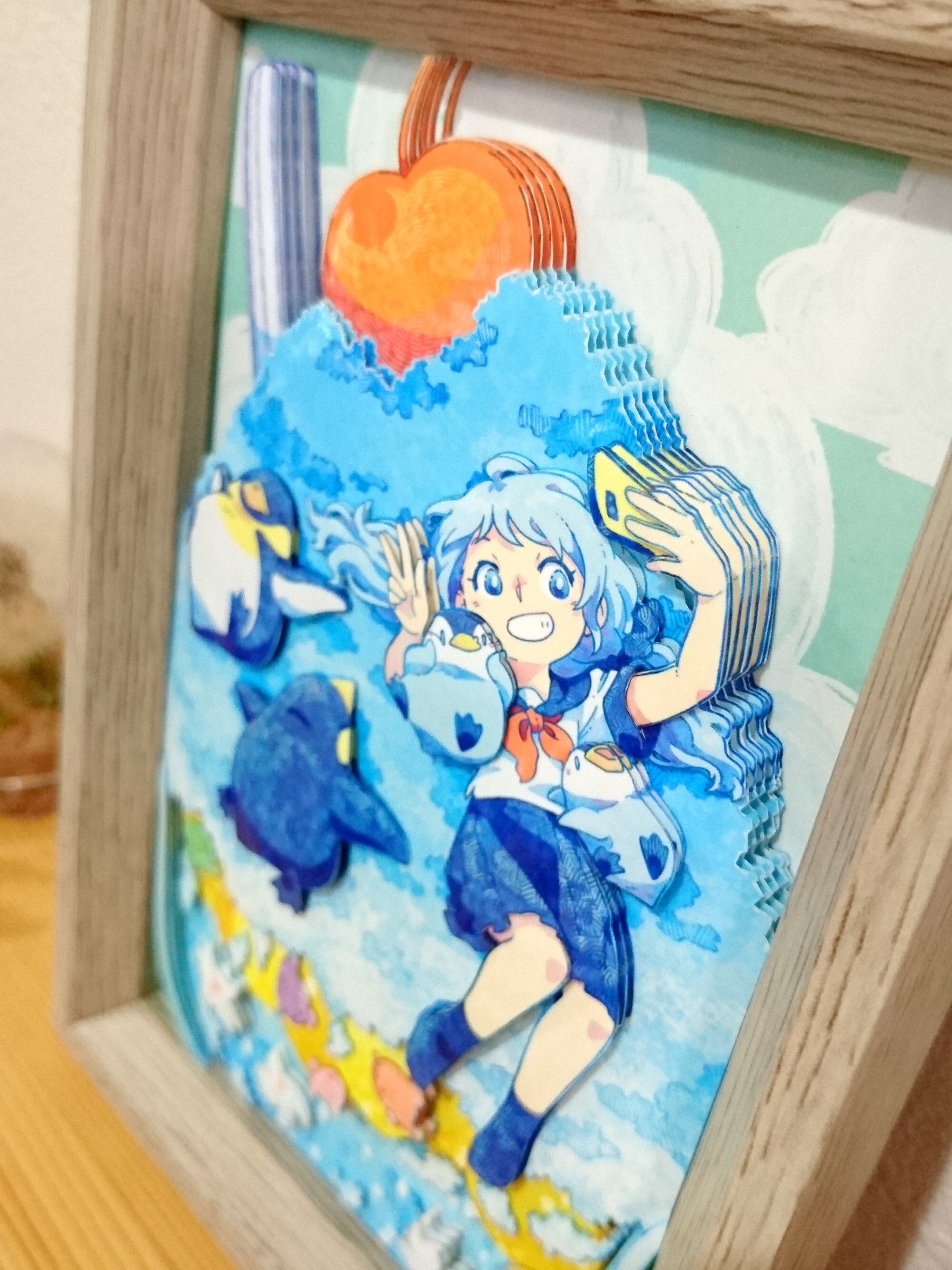 イラストを切り抜き、何枚も重ねて立体感を出す作品です。