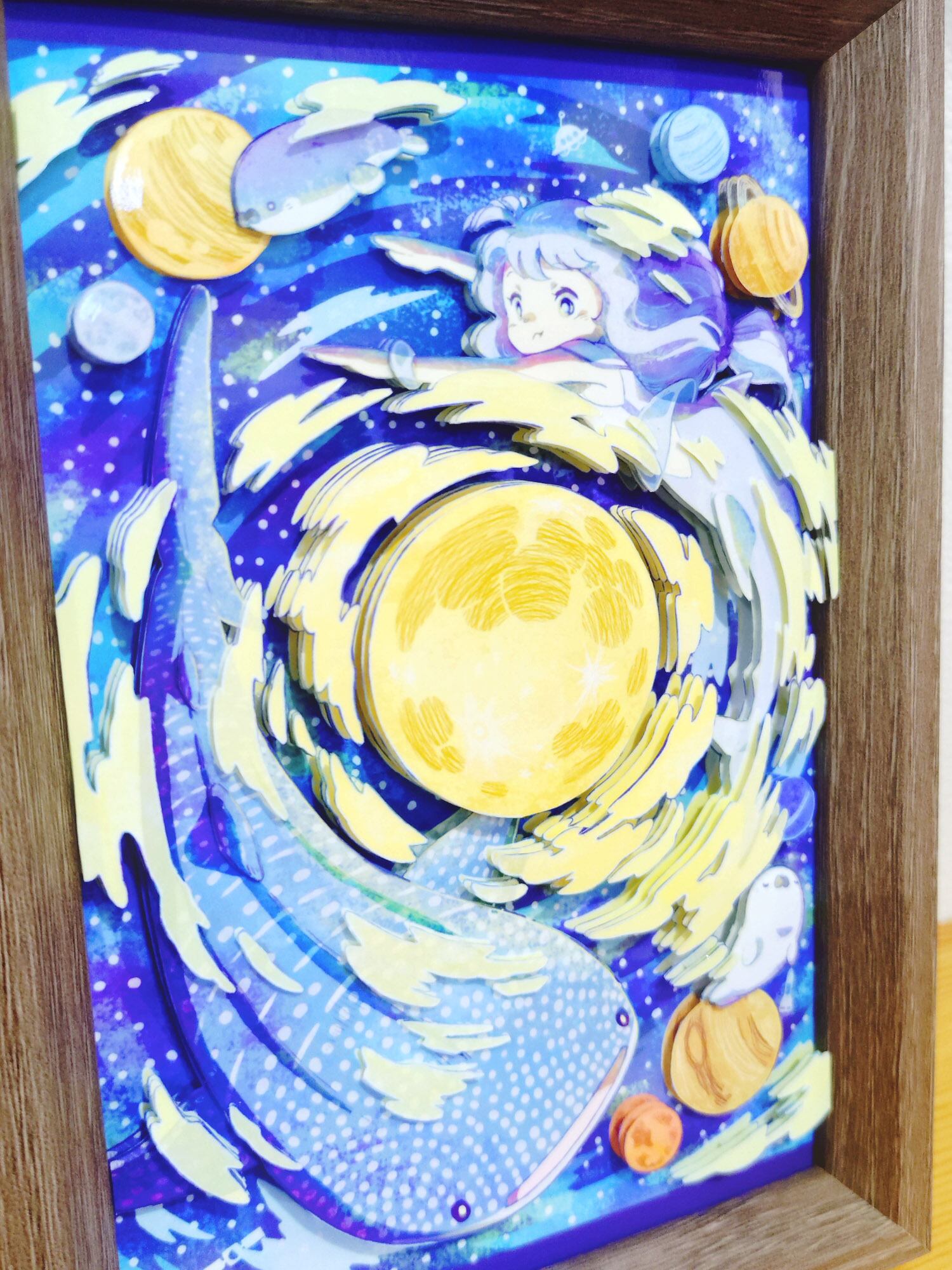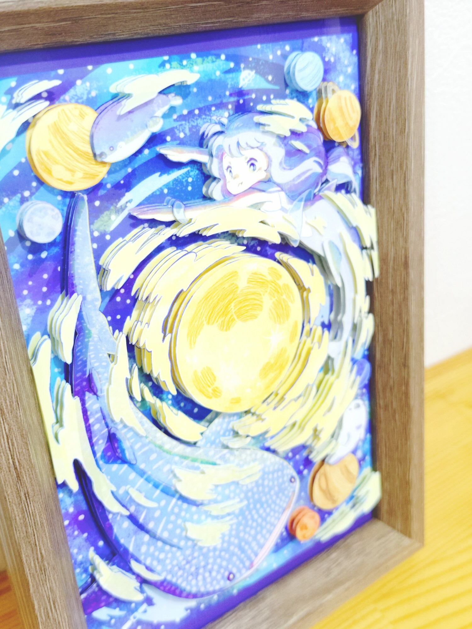 イラストを切り抜き、何枚も重ねて立体感を出す作品です。